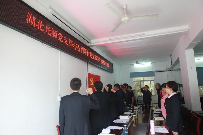 主题活动中,两支部委员对优化营商环境等重要文件精神进行了领学。石洞坪村党支部书记朱应虎和光源党支部书记刘铭结合村企工作实际,分别以“ 推动乡村振兴 优化营商环境”“优化营商环境 助推企业发展”为主题给大家上了堂生动的微党课。朱书记生动讲述了曾经发生在石洞坪村具有代表性的“九四”农民武装起义红色故事。两个支部的四名党员畅谈了党史学习感悟。随后,光源党支部为石洞坪村送上了党史学习教育书籍。